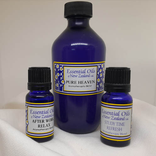 Our blends of pure essential oils have been designed by highly qualified aromatherapists, Karina Thorpe of Christchurch and Valerie Graham in New York City to enhance and revitalize your well-being. They are provided in the pure form for use in aromatherapy burners or diffusers (10 mls & 50 mls bottle sizes) or as prepared massage blends diluted in pure apricot oil.